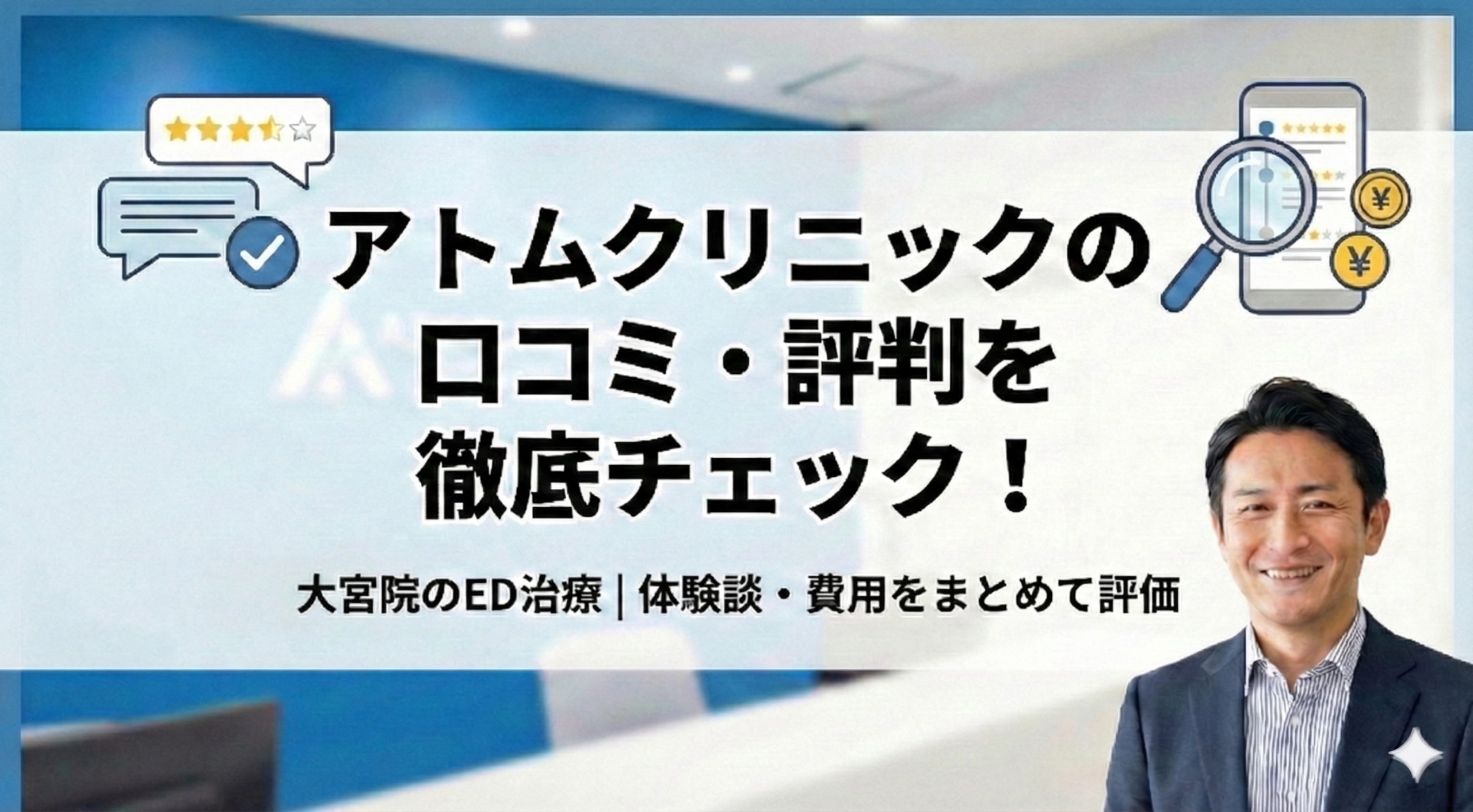 この記事では、アトムクリニック大宮院について、ED治療を考えている人向けに、口コミ・評判・費用の目安を中心に、来院前に知っておきたいポイントを整理していきます。