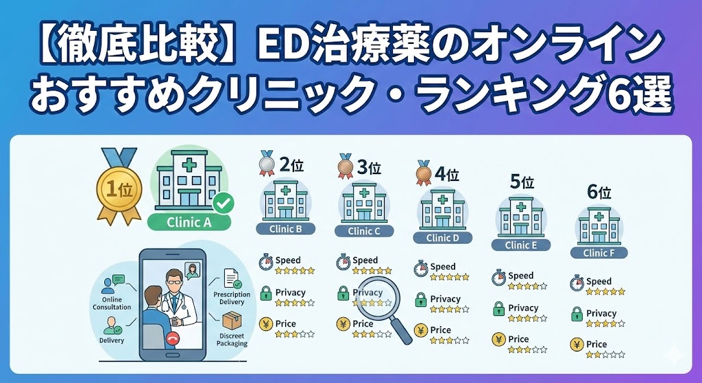 この記事では、現在主流となっているED治療薬のオンラインクリニック6院を徹底比較しています。