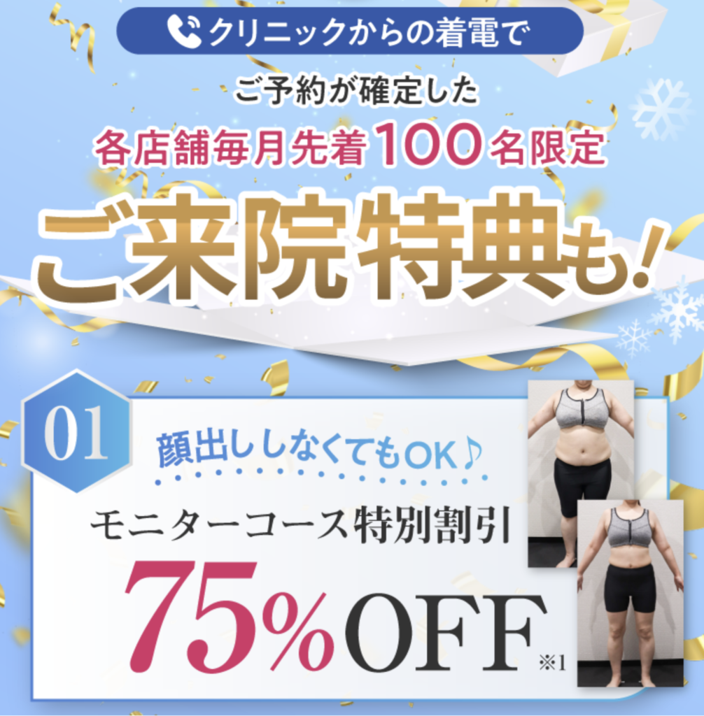 費用を抑えながら、実績のあるクリニックで医療痩身を受けたい方にとって、検討しやすいキャンペーンといえるでしょう。