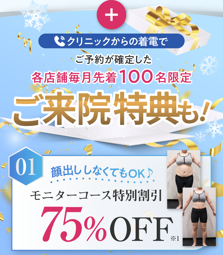 顔出しなしのモニターも募集中で、モニターになるとかなり割引がきくみたいです!