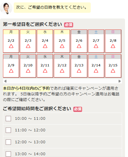 第二希望日まで選択できるので、余裕を持って予約できます。