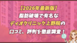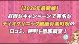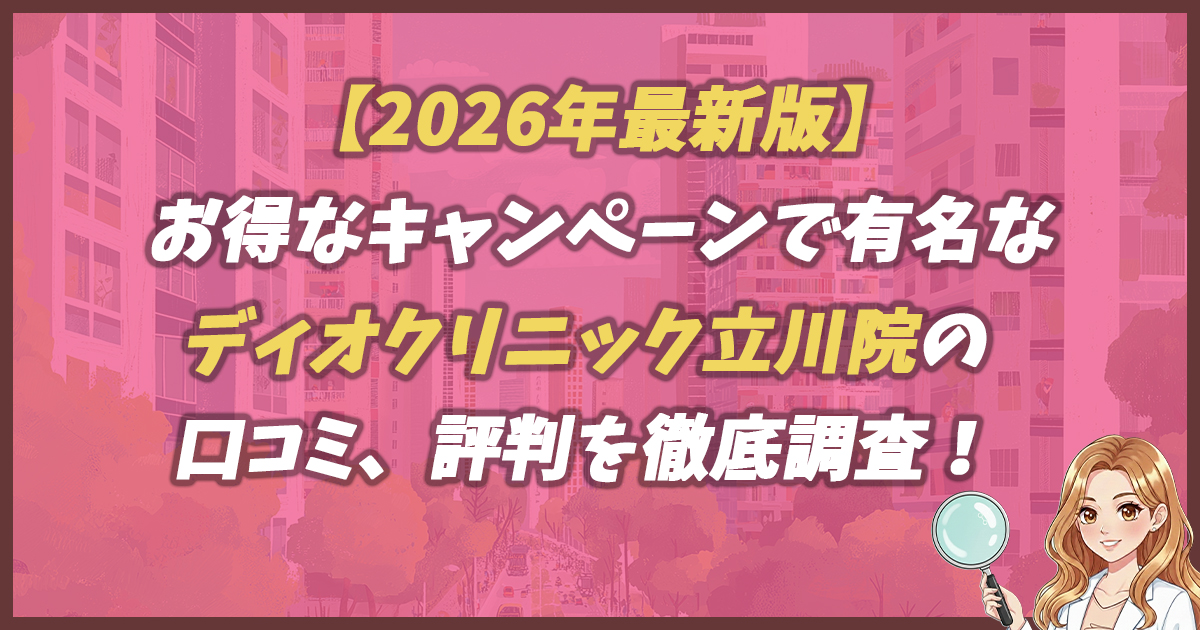 この記事では、ディオクリニックのグループであるディオクリニック立川院の口コミや評判を調査していきます。