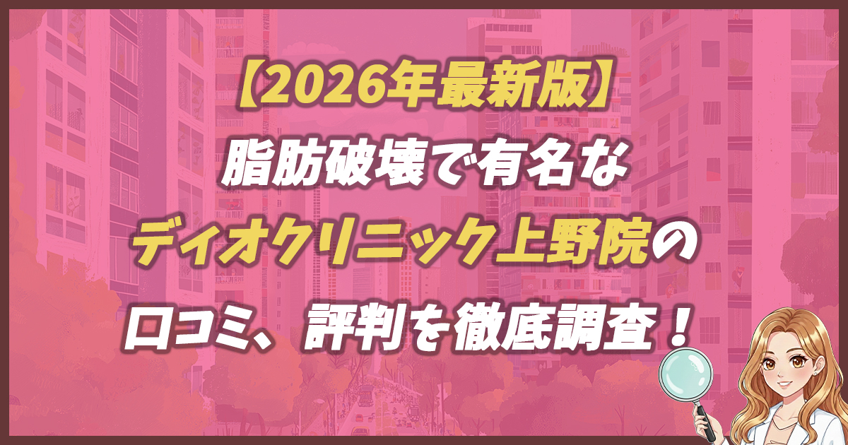 この記事では、ディオクリニックのグループであるディオクリニック上野院の口コミや評判を調査していきます。