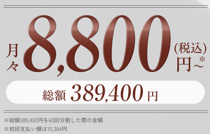 DSクリニックでは、料金体系は明朗での月々8,800円(税込)(総額389,400円)~体験できるようです。
