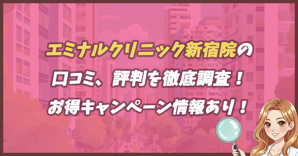 この記事では、エミナルクリニックのグループであるエミナルクリニック新宿院の口コミや評判を調査していきます。