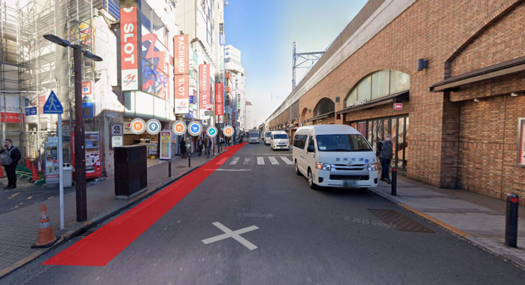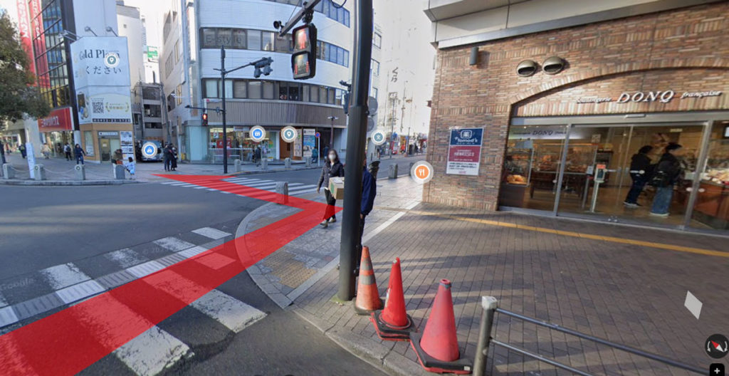 ②右手に交番があるので、そのまま真っすぐ横断歩道を渡ります。