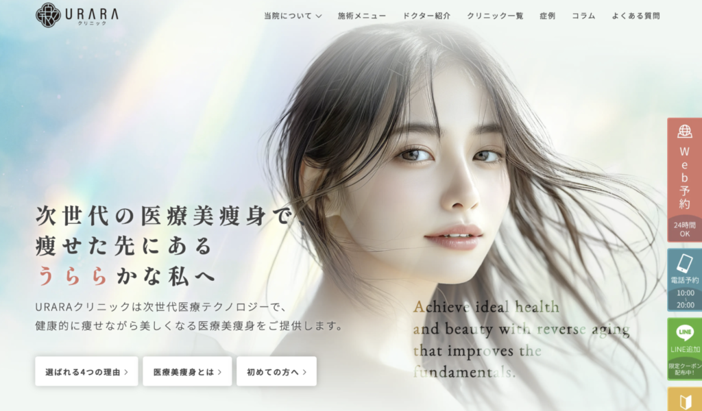 URARAクリニックは、脂肪冷却や注射、内服薬、食事指導などを組み合わせた医療ダイエット専門のクリニックです。